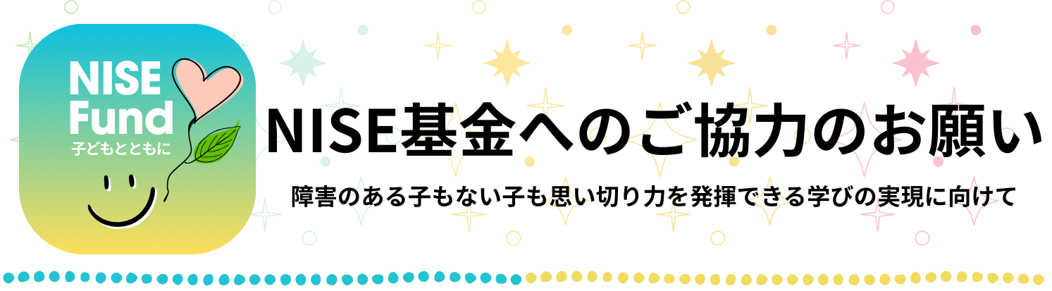 各事業を継続的に展開し、ナショナルセンターとしての役割を果たし続けるためには、安定した財務基盤の強化が必要不可欠であり、基金へのご協力をお願いしております。障害の有無に関係なく、子供たち一人一人が思い切り力を発揮できる学びの場の実現に向けて、「NISE基金」への温かいご支援とご協力を賜りますよう、心よりお願い申し上げます。