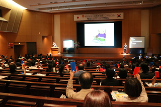 韓国国立特殊教育院の教育研究士のオヨンソク氏から、韓国の統合教育(日本のインクルーシブ教育システムと近い概念)の政策動向と現状について、韓国大田市のソナン初等学校の教員チェジョンヒ氏から、障害のある子どもと障害のない子どもの交流活動に関する実践事例についてご報告いただきました。その後、日本における交流及び共同学習の実践として、相模原市立青少年相談センター指導主事の岡野陽一氏から、小学校における障害理解授業や交流及び共同学習の実践について話題提供いただきました。